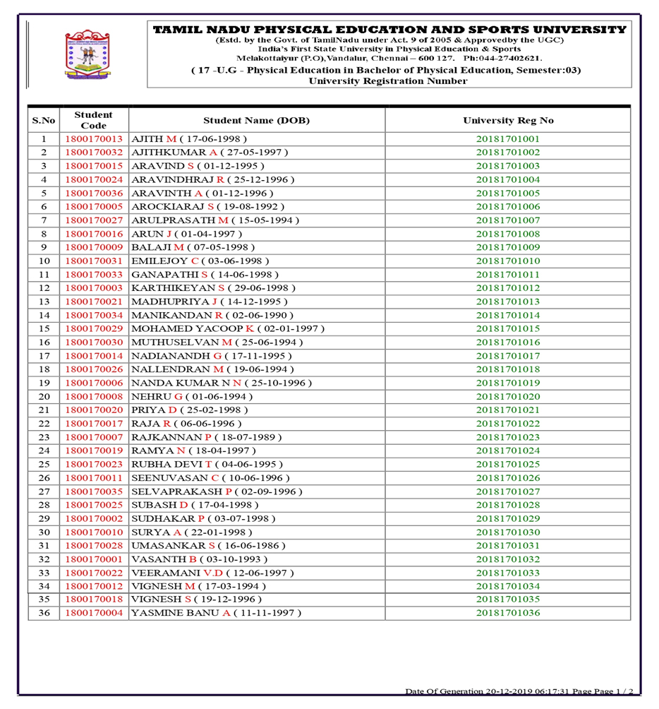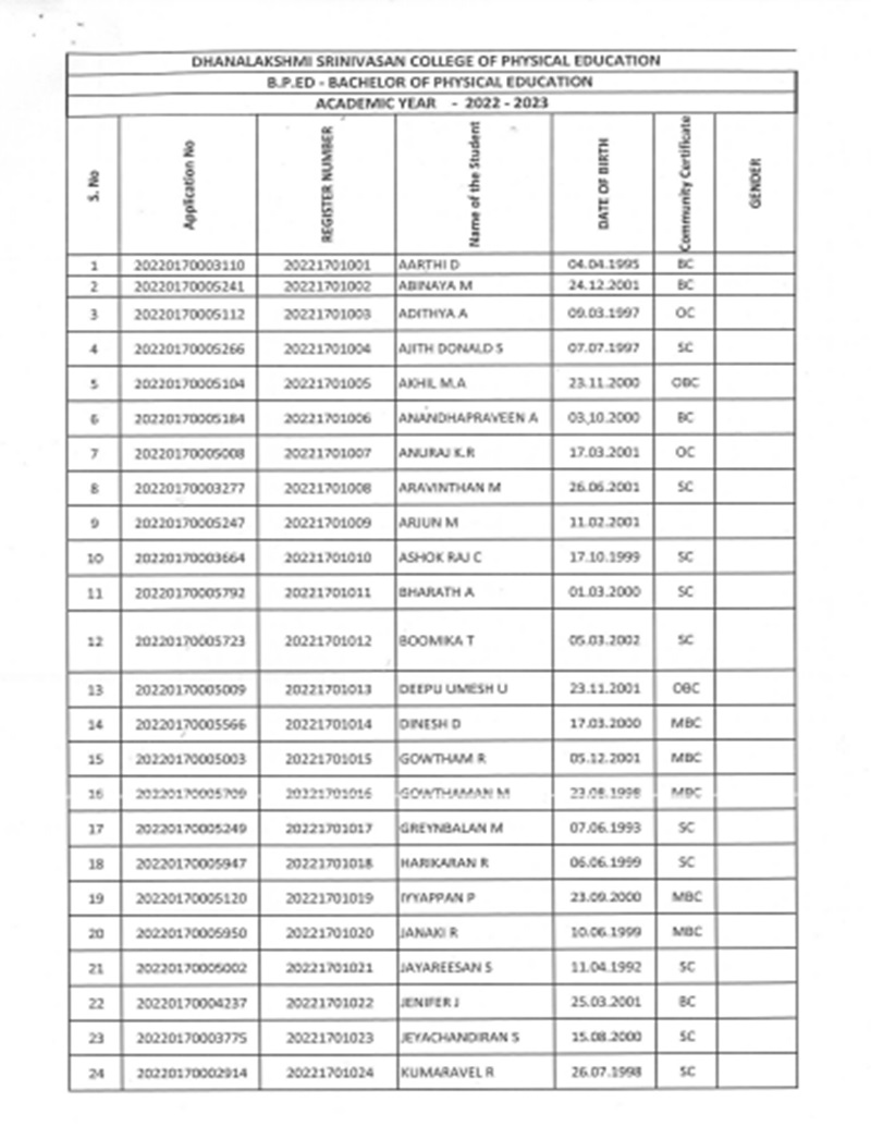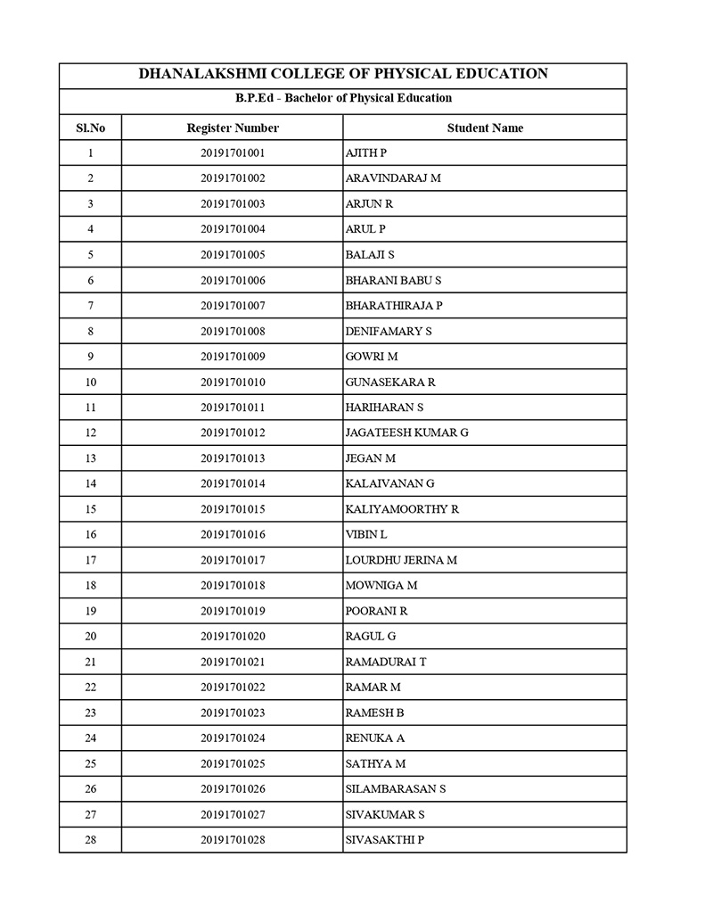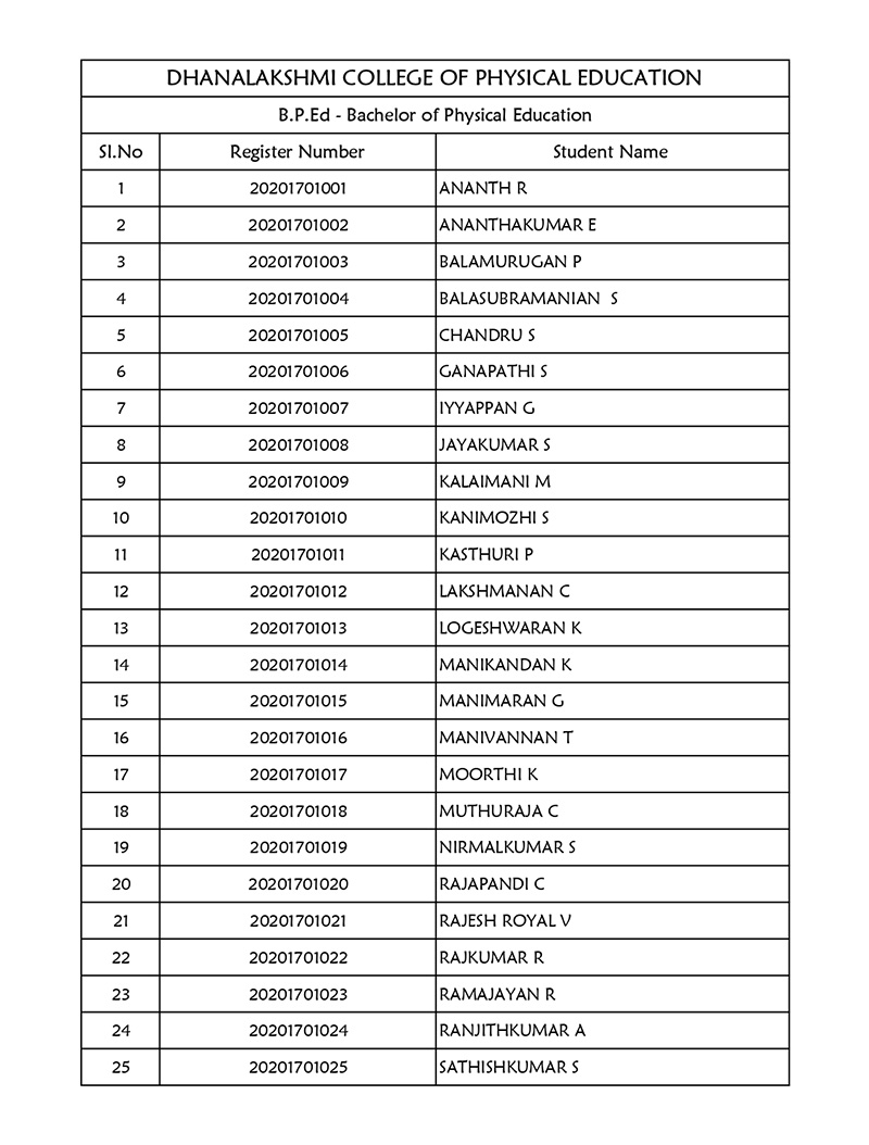 A candidate shall be eligible for admission to the Bachelor of Physical Education degree course (B.P.Ed) if he/she has received a degree with 45% marks in 10+2+3 pattern from a university recognized by Tamil Nadu Physical Education and Sports University subject to the following conditions.